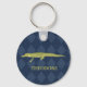 Skapa en liten personlig som är perfekt för någon som kärlek krokodiler och andra djur. Nyckelkedjan har en realistisk illustration i stil av en alligator i ett oliv grönt färg mot en mönstrad bakgrund i marinen och är redot att vara personlig med ett namn för att matcha oliv grönt bokstäver.