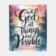 Denna pulserande vattenfärgskonstruktion har ett stort himmel och flygande fåglar, parad med det kraftfulla budskapet "Med Gud all Sak är möjligt. personlig med namn.