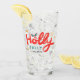 Jul Holly Jolly Roligt Winter Personlig Namn Drinking Glass har texten "Holly Jolly in red and blue modern calligraphy script typography and personlig with your custom name. Anhåll med holly och snöflingor. Perfekter till jul och helgdagar eller till party till jul. Designad av ©Evco Helgdagars www.zazzle.com/store/evcoholidays