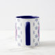 Här är en söt personlig jul mugg som både barn och vuxnor kan njuta av. På ena sidan finns en vidsträckt nordlig renbild från stil i mitten av en blå grått-bakgrund som är inramad i matchande lavendel rosa. På den andra sidan finns Jultomten på samma cirkelbanderoll. Den inramade bilderna placeras sedan på en passande blå och vit snöflingerbakgrund, med anpassningsbarna i marint blått mellan bilder.