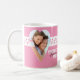 Romantiskt foto mugg - perfekt för en bröllop-årsdag eller valentines day-gåva. Fotografimallens visning 2 av ditt favoritbilder i hjärtformer och ordalydelsen kan redigeras helt. Det står för närvarande "du är fortfarande den, Kärlek du är för evigt [namn] och du kan redigera det som du vill. Fotokollaget ställs in mot rosa och vit bakgrund med gräns av rosa hjärta.