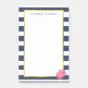 De här snygga anteckningarna har en fet marin blå och vit bakgrund i rand, faux guld gräns och en söt rosa i mjuka vattenfärger. Samordnar med våra Rand & Rosa Peony-kontorstillbehör, pappra produkter och tillbehör. Anpassa med namn eller den text du vill ha!