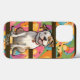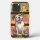 Färgfull 70-tums Retro Funny Bull Dog Personlig iPhone 13 Pro Fodral. Den här telefonväskan visar en komisk hund som slår en attitydlinje mot en groovisk bakgrunds bakgrund. Bakgrunden har ett kalejdoskop med att vrida mönster och levande färg som påminner om 70-talets discovibes. Perfekt för att sprida leenden och lägga till en funky vrid till stil! Välj enheten stil i den nedrullningsbara menyn. Glöm inte att anpassa dig till dina speciella vänner namn.