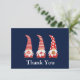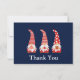 Det här är en söt personlig Jul Tack kort med tre röda gnomer som håller julgodis, gåva och prydnad på mörk blått bakgrund. Det är underbar jul party-tack.