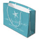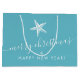 Teal Blue and White Coastal jul Tropical Starfish Nautical "God jul & Gott nytt år" anpassade Large Gift Bag perfekt för en strand åt dem julfest eller jul på strandhuset.