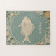 En graciös fisk glider tvärs över en lugnande oval bakgrund, inramad av en känslig blommigt gräns. Visste du att fisk har funnits i över 500 miljoner år, innan dinosaurier? Deras gamla visdom och uthållighet fångas i denna fredliga utformning.