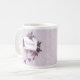 Sprayer av romantiska laktor omger en mittvit rulla med lila sladdar och handskar på en mjuk baksida av lavender-damm.