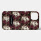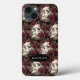 Personlig-mobilfodral med en mönster av vattenfärgade döskallar och burgunt maron ro mot en svart bakgrund med en namnskylt för en namn, ett monogram eller initialer. ASSISTANS: Om du vill ha hjälp med designändringar eller anpassning, ändrar färg, överför designen till en annan produkt eller om du vill samordna objekt kontaktar du designern INNAN ORDERING via Chattan Zazzle MESSAGE nedan eller e-post makeitaboutyoustore@gmail.com.