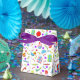 Födelsedagsfest för gäster med tack, muffinsar, godis, ballonger och noisemakers. Så här anpassar du redigeringstexten för att lägga till namn.
