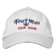 En dynamisk personlig Första Mate-sockel i nautiskt rött, vitt och blått stil som är brodersatt så att man kan göra intryck på eller av båten. Gör den här repankardesignen så unik som du är med ditt namn, din plats eller din båt namn. Använda länken för att kontakta oss med dina speciella designförfrågningar eller för att få hjälp med något av dina anpassningsprojektbehov.