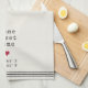 En söt kökshandduk för personlig med vintage skrivmaskin, rand och en hjärtillustration. "Home Sweet Home" eller ditt val av anpassningsbar visas tillsammans med hemmets koordinater för latitud och longitud.