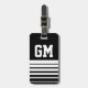 Personligens monogram första bagagetagg för manar. Klassisk svartvit och grått rand-design med vit namn-inledande brev med monogrammet. Coolans presentidé för manar. Masculine manly sport design.