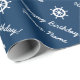Personlig nautisk frakt, blå och vit papper för Helgdagar på födelsedag eller jul. Anpassningsbar klackar med gratulationer. Anpassningsbart namn med texten anpassningsbar Grattis på födelsedagen grattisar. Skripttext för anpassadets färg och elegant i marin blå bakgrund för önskemål eller anteckning. Överraska dina vänner, familj, sjöman, make, fru osv. Underbar presentationsutformning för temaparty till havs. Passar även för studenten, årsdag, nytt hem, nytt husdjur, badbröllop, befordran, gravid, nytt arbete, ny båt eller yacht, segling och annat.