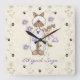 Personligkatten, blommor och tasstryckväggen tar fyrkantig klocka