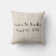 Personifiera denna älskvärda dekorativ kudde med namnen av bruden och ansa och datera av bröllop på den härliga linnelookbakgrunden. Du kan lätt ändra stilsortsstilen, om önskad. En underbar minnessakgåva för lycklig kopplar ihop!