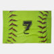 Handduken med avbildar av softball, och personligjerseyen numrerar.