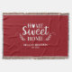 En mysig filt med texten Hem är Bäst och ditt namn och bröllopsdatum. Personliggör denna röda och vita kastblanka för en vacker gåva till bröllop. Flera färger finns. Skapad för dig av Blackberry boulevard.