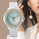 Personligt blå Marmor Damur med Rhinstenar Armbandsur