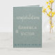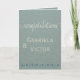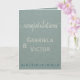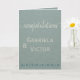 Modern bröllopskort för gratulationer som du kan anpassa med det lyckliga parets namn. Inuti texten står det: Vi önskar er massor av lycka på er resa tillsammans! Grattis på ert förlovning! Vintagefärger med en texturerad bakgrund. Hjärt- och korsdesignelement ingår.