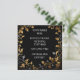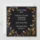 Personligt bröllopsinbjudan med guld- och silverblad och svart bakgrund.