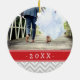 Vacksam anpassningsbar designad julfotodekoration med trendiget chevron-utskrift gräns. Lägg till ett eget foto om du vill skapa perfekt bröllop keepy eller en personlig för din familj och dina vänner. Lägg till text i menyfliksområdet färgad ram med året, ditt namnmonogram eller något annat meddelande som du vill ha. Klicka på Anpassa om du vill redigera typsnitt eller lägga till fler foton för att skapa din egen unika helgdag-dekorationsdesign. En speciell och unik gåva!