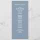 Fina Bröllopsprogram för typografi som du kan anpassa. Dusty blå bakgrund med vit text. Design by Elke Clarke © Finns på www.zazzle.com/monogramgallery. Lägg till all din personliga information för att skapa ett enkelt men sofistikerat program som dina vaktmästare kan dela ut när gästerna går in i kyrkan eller sitter där ceremonin tar ställe. Det hjälper människor att följa med under ceremonin, men det fungerar också som en viktig fråga för dina gäster. Du kan använda fält att fylla i den föreslagna informationen om bröllopsfesten och serviceordningen och tacka för meddelandet eller markera "anpassa" och använda redigeringsmenyn för att ändra textavståndet, typsnitt, färg som du vill skapa egna bröllopsprogram.