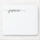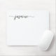 Svart och vitt minimalistiskt personligt musmatt med monogramnamn i elegant handskriven stil. Designen visar ditt förnamn i en vacker, svansad typsnittsstil med svart skrift på vit bakgrund. Dessa är lätta att anpassa. Ett fint, feminint och stilrent presentalternativ för födelsedagar, bröllopsfest, mors dag, 16-årsdag och det är perfekt för tjejen som älskar unika och minimalistiska saker.