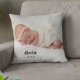 Personlig kastkudde med ett foto av bebisen, deras namn och året. Dubbelsidig med samma design. Ändra placering, typsnitt eller färger för att matcha din favoritbild av den nyfödda genom att klicka på knappen för att redigera designen.