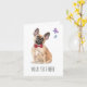 Anpassa detta gratulationskort för att skicka till alla som äger eller älskar fransk bulldog! Kortet har en akvarelleffekt fransk bulldog med en röd rosett.