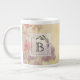 Personlig initialmonogram stor mugg med anpassad text - Vintage blomstermotiv stor keramisk present för bröllop, Eid, årsdag, födelsedag och mer.