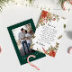 Fira säsongen med stil med vårt eleganta julkort i platt format, med en festlig smaragdgrön design och ett fint, enkelt teckensnitt. Den ena sidan visar ditt personliga julmeddelande, medan den andra sidan visar ett anpassat foto - perfekt för att dela en kär minne med nära och kära. Oavsett om det är en familjeporträtt, en spontan stund eller en favoritbild från semestern, ger detta vackert designade kort värme och glädje till alla på din lista.