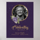 Elegant personlig lila och guld blomsterbegravningsfoto välkomstskylt med en guld fotoram prydd med lila rosor.