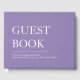 Enkel och modern gästbok för bröllop eller andra fester eller evenemang i lila och vit färgblock med ett serif-teckensnitt och minimalistisk stil. Personalisera minnessaken med valfri text, namn, datum, osv.
