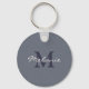 Personligt monogram i blå linneduk nyckelring