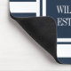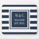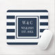 Elegant musmatta med personliga initialer och monogram med ett marinblått och vitt randigt mönster med dina initialer och efternamn samt etableringsdatum i en fyrkant med marinblå ram och klassisk vit text. Designad av Thisisnotme©