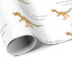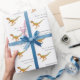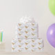 Rolig personlig pojknamn glad födelsedag Dinosaurie velociraptor Inpackningspapper. Skrattretande Velociraptor dino Raptor-mönster med modern typografi vit presentförpackning