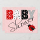 Personlig Röd Rosa Svart och Vit Nyckelpiga Barnkalas Inbjudan