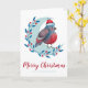 Snygg personlig julhälsningskort med en vattenfärg illustration av en fågel på en måne.