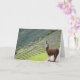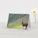 Fotografi av ett lama på Machu Picchu i Peru. Blanka inuti för att skriva ditt eget meddelande.