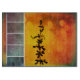 En pervoskia (Russian Sage)blomma mot en gult och orange med flammande hett med Collage-foton i rosan Aqua och ro med en färg på metall texturerat utseende.