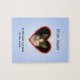 Ladda upp ditt favoritfoto för husdjur och anpassa texten för att skapa det här unika pusslet. Designen har en rityta med ram för fotot, med en blek blå övertoningsbakgrund. Namn längst upp är anpassadet för namn eller annan text som du föredrar, och meddelandet under fotot är också anpassade.