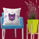 Pet Cat Lila White and Black Modern Dekorativ kudd Kudde