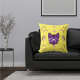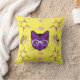 Pet Cat Lila White på Black Modern Cute Gult Kudde