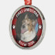 Minneshögtidlighålla ett sällskapsdjurs första jul med en personlig som bevarar fotoornament med röd och svart buffelbock och namn och år. ASSISTANS: Om du vill ha hjälp med designändringar eller anpassning, ändra storlek på färg, flytta designen till en annan produkt eller om du vill samordna produkter kontaktar du designern INNAN ORDERING via Chattan Zazzle MESSAGE nedan eller e-post makeitaboutyoustore@gmail.com.