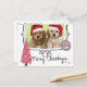 Sessäsong: hälsning-jultomtkort. Den här julfotokortsdesignen är anpassade med din egen familj namn och ditt foto! Eller naturligtvis din hund. Det finns en julbakgrund och fotot är skilt från designen av gräns. En roligt av julklappar med prydnadsföremål och grått följt av "fred och Kärlek" med en handskriven teckenkänsla. Resten av texten är anpassadet! Anpassa med din egen jul, hälsning eller önskemål, och din egen familj namn. Du kan till och med lägga till datumet.