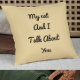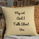 Denna lustiga och snyggt kattmatade bikudde har citatet "Min katt och jag pratar om dig" i en modern typografisk design. En personlig i perfekt för kattälskare, kattbesties, rumskamrater och mammor, det är anpassade med ditt eget namn eller meddelande. Underbar för mysiga kupor, sovrum och minimalistiska utrymmen. Lägg till humor och kattdjur till din hemdekanter. Perfekt för födelsedagar, husvärmare eller gåvor under 50 dollar.