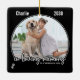 Härda din bästa vän med en anpassningsbar hund fotopet minnesprydnad. Den här unika prydnadssakén för husets minnesmärke är den perfekt som du själv, familjen eller vänner får för att betala hyllningen till din kära. Vi hoppas att ert minnesmärke kommer att ge er fred, glädje och lycklig minnen. Citat " i överljudsminnet. " Med två tass avtryck på vardera sidan. Anpassa med favoritfoton för husdjur, hund eller katt, och namn. Ornament är dubbla, du kan göra 2 favoritfoton, en på vardera sidan. Anpassa namn och datum. Se "Anpassa den här mallen" för att ändra foto och namn. COPYRIGHT © 2020 Judy Burrows, Black Hund Art - Med alla Höger reserverade. Pet Memorial in Loving Memory Ceramic Ornament