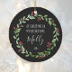 Fira ditt husdjurs första jul i hans eller hennes nya eviga hem med detta vackra prydnadsföremål, med en vattenfärgad julkrans som omger ord "1:a julen i mitt hemland", tillsammans med ditt husdjurs namn och året i vit vitskrift och handskrift typsnitt på svart bakgrund. Anpassa den omvända sidan med ett favoritfoto av ditt sällskapsdjur, omgivet av samma andetag och svarta gräns.
