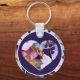 Pet Photo Keychain med Namn i Lila och blått Nyckelring