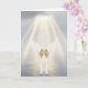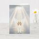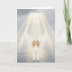 A serene illustration featuring a beloved dog with softly glowing angel wings, standing at the edge of still water beneath radiant beams of light. The scene is bathed in gentle illumination, with subtle sparkles drifting through the air and a peaceful sky above. The composition uses soft tones and atmospheric light to create a calm, reflective mood, emphasizing grace, warmth, and quiet beauty.
